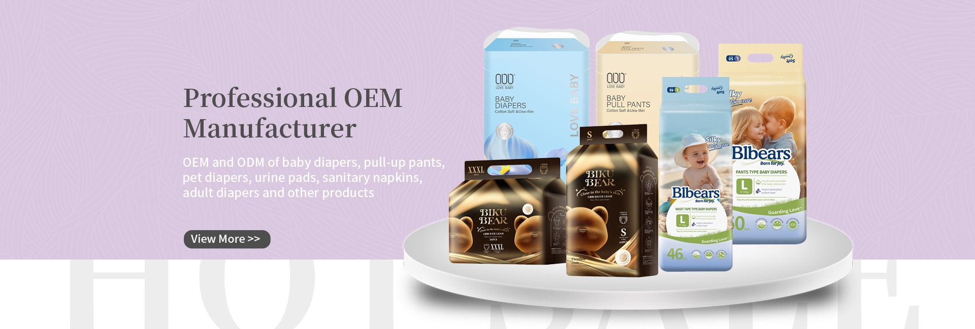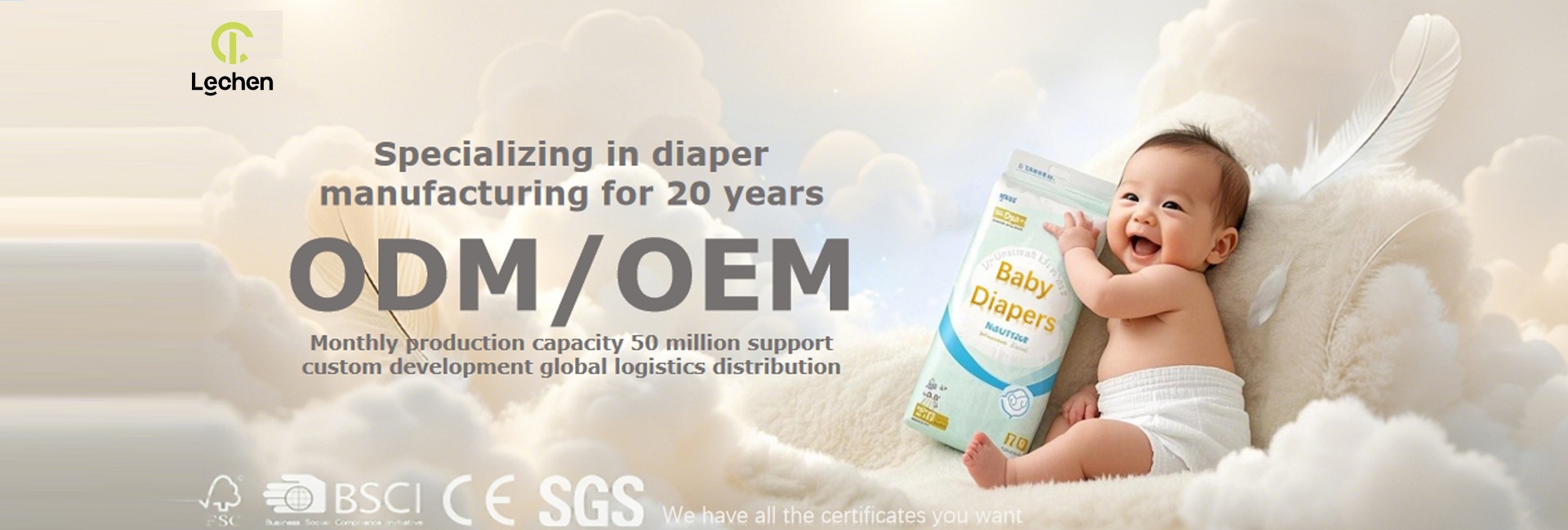 Productos principales:Pañales para bebés, pañales para mascotas, toallas sanitarias para mujeres, pañales para adultos, toallitas suaves